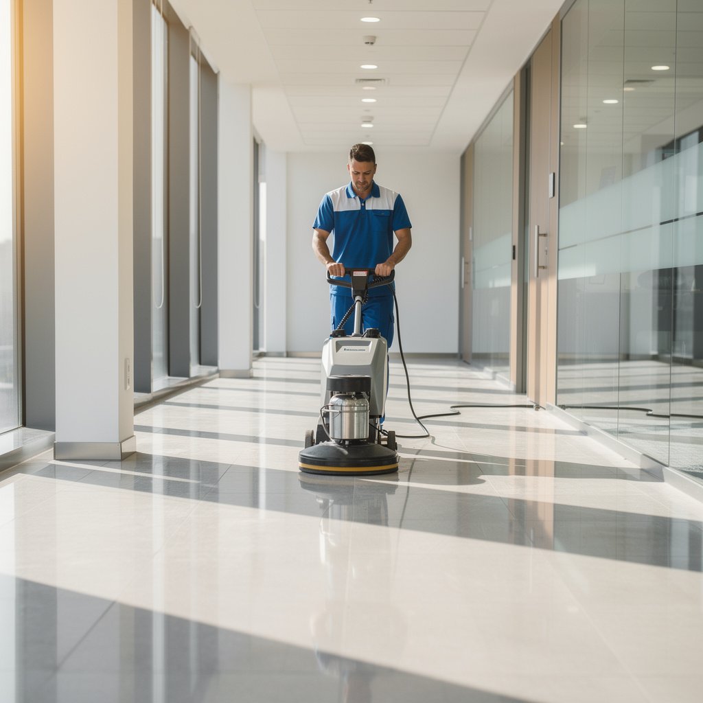 Umfassende Reinigung von Bürogebäuden, Treppenhäusern und Gemeinschaftsräumen mit höchsten Qualitätsstandards.